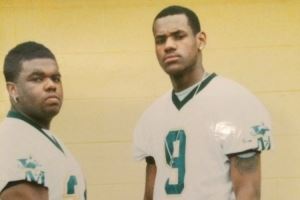 青春年少!詹姆斯转发与高中队友身穿橄榄球队服合照