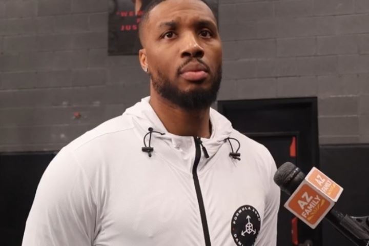 布克第一次参加全明星是在2020年,当时受伤了的利拉德指定布克顶替他参加全明星赛。记者问利拉德是否想到了布克后来会有这么大的进步。