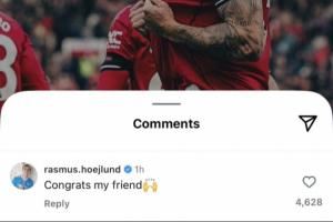 曼联旧将霍伊伦在其社媒下面对舍什科表示祝贺:“恭喜你,我的朋友”