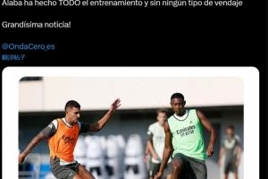 记者:阿拉巴完整地参加了皇马的合练,并且没有缠绷带